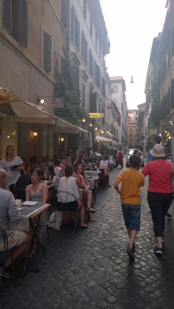 As enticing as the crisp white sheets are, I’m too excited to sleep. After a quick shower, I change into a summer dress and sandals and I’m off to find dinner and wander the narrow streets near the Spanish Steps.