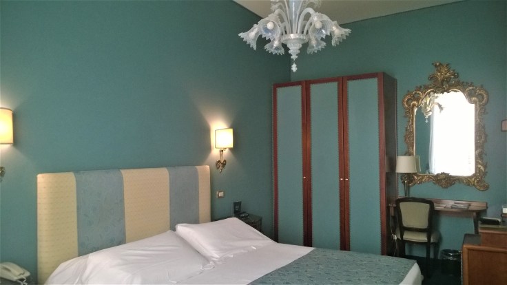 I remember pouring through travel guidebooks in college which now seem antiquated when compared to instantaneous reviews on Trip Advisor and Expedia and those 360-degree birds-eye views and satellite pictures. My deep turquoise room with its fanciful crystal chandelier, gilt mirrors and gold brocade draperies is refreshingly European. The only slightly Westernized intrusion is the small refrigerator honor bar.