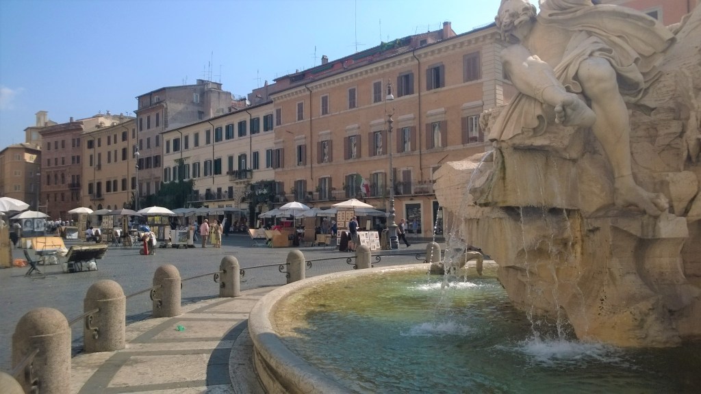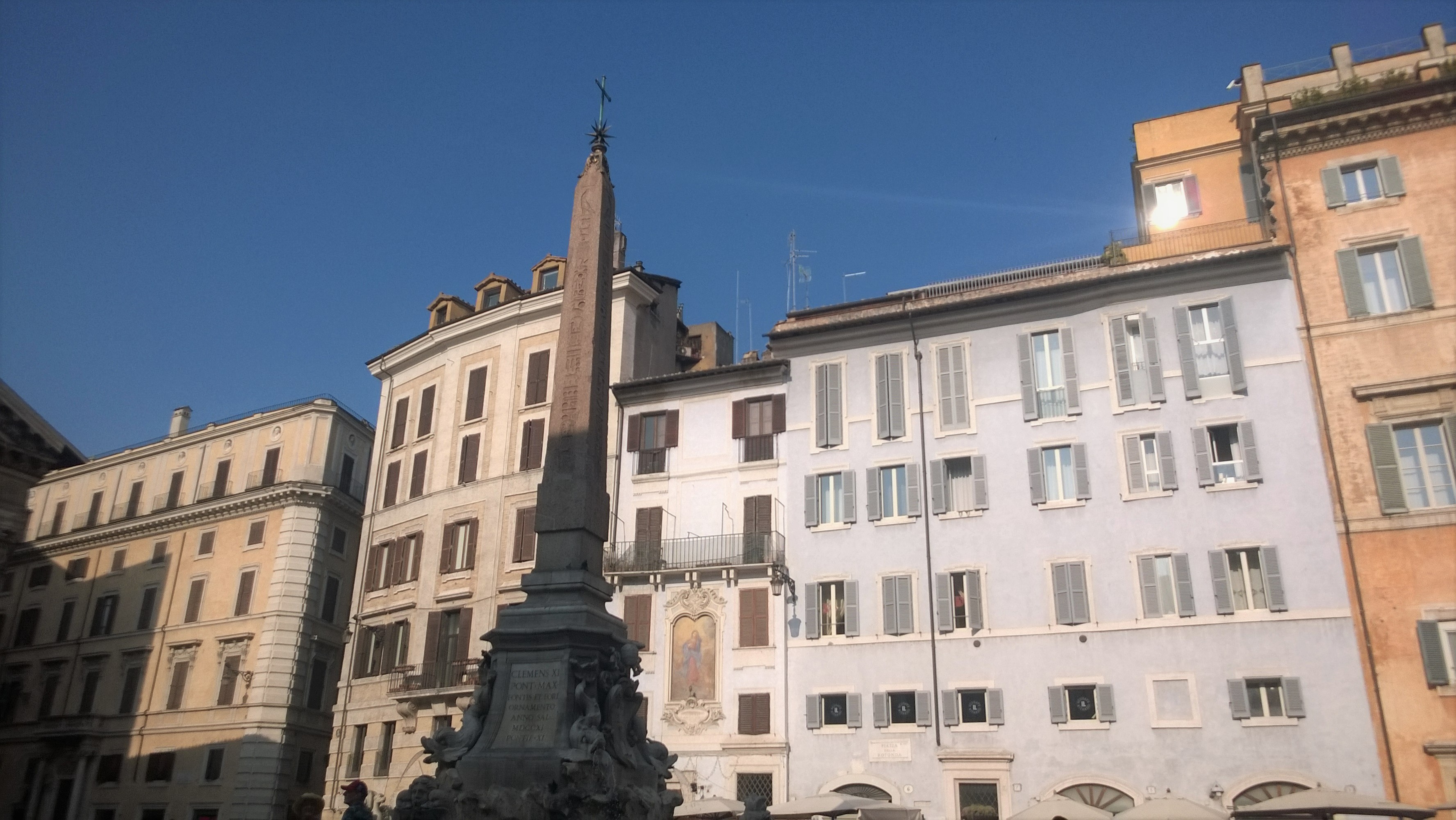 Most people take pictures of these creatures, but the real treasure is the Egyptian obelisk of Ramses II with its carved hieroglyphics in the center pedestal. Not original to the fountain, it was moved here in the early 1700s by a zealous Pope who also installed an oversized gold cross atop the obelisk. Poor Ramses probably rolled over in his grave. Although, if there is an afterlife, Ramses and Galileo would undoubtedly have lively conversations about the sun.