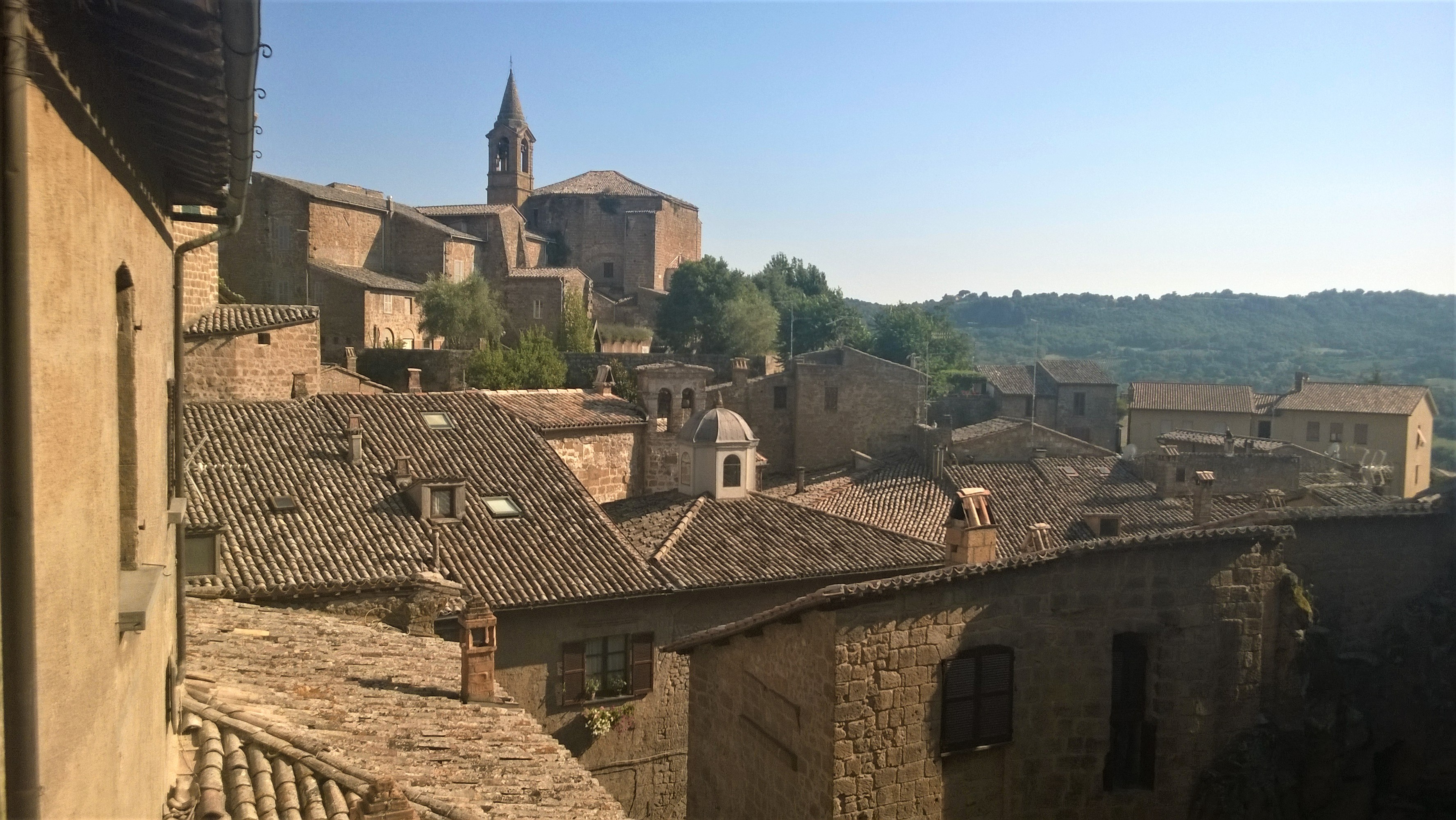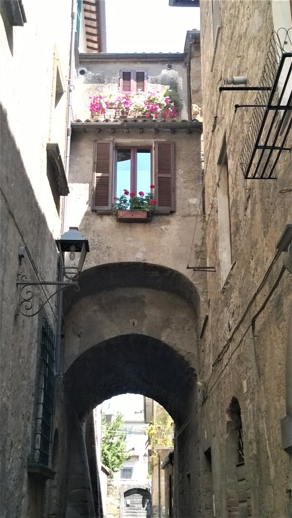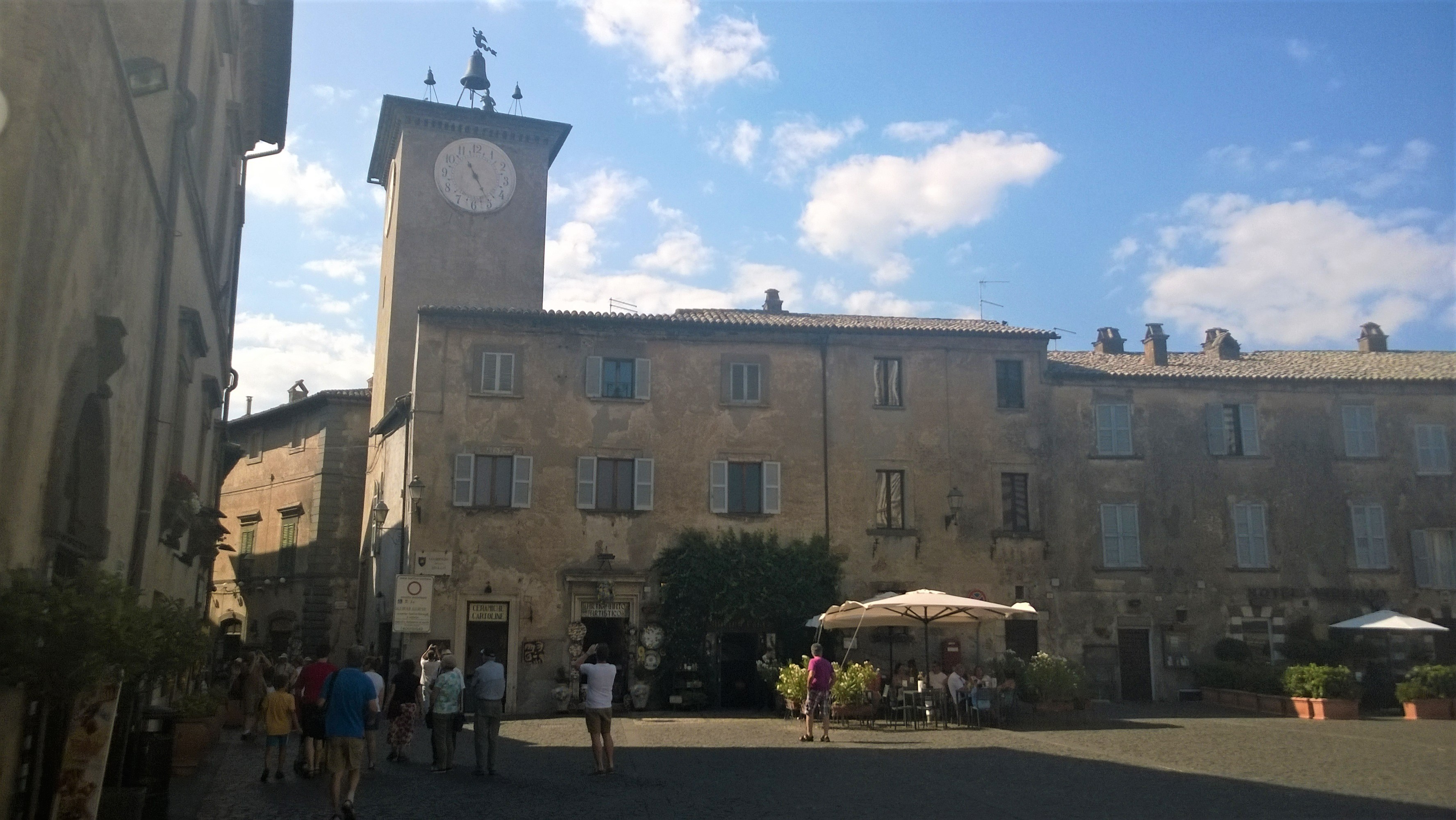My hotel occupies a medieval building in the main piazza across from the famous cathedral or Duomo. The bronze statue atop the clock tower on the hotel holds two hammers: the large one strikes the hour on the big bell and the smaller hammer rings quarter hours on the small bells. I am immediately smitten by this ancient village with its many clock towers, stone buildings, and terra cotta roofs. No wonder the Popes sought refuge here during the city state wars in the 1500s.