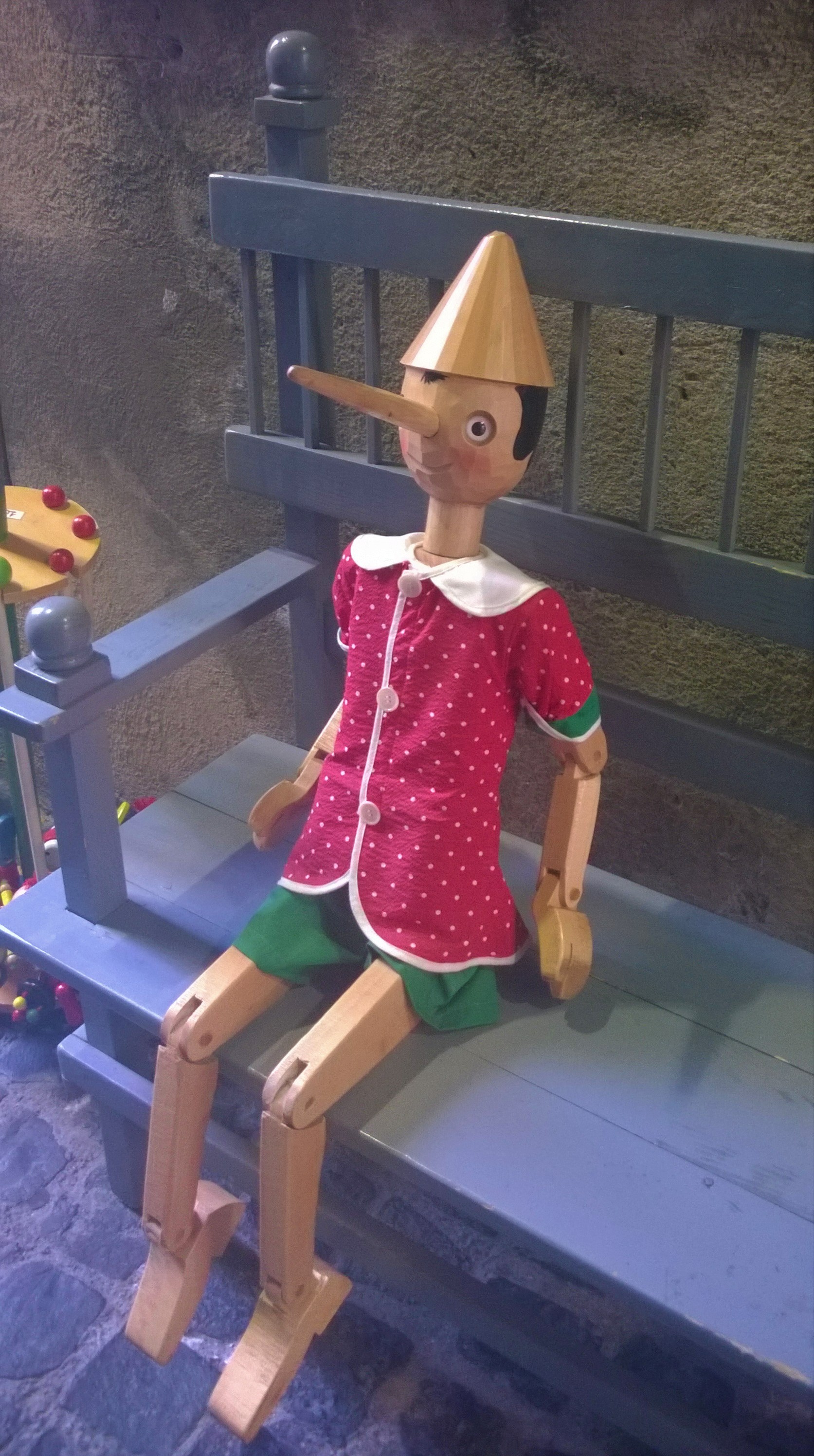 An early morning walk through the village reveals small surprises around every corner: a classic Vespa on a street too narrow for cars, a life-sized Pinocchio perched outside a wood carver’s workshop, a flea market in the piazza.