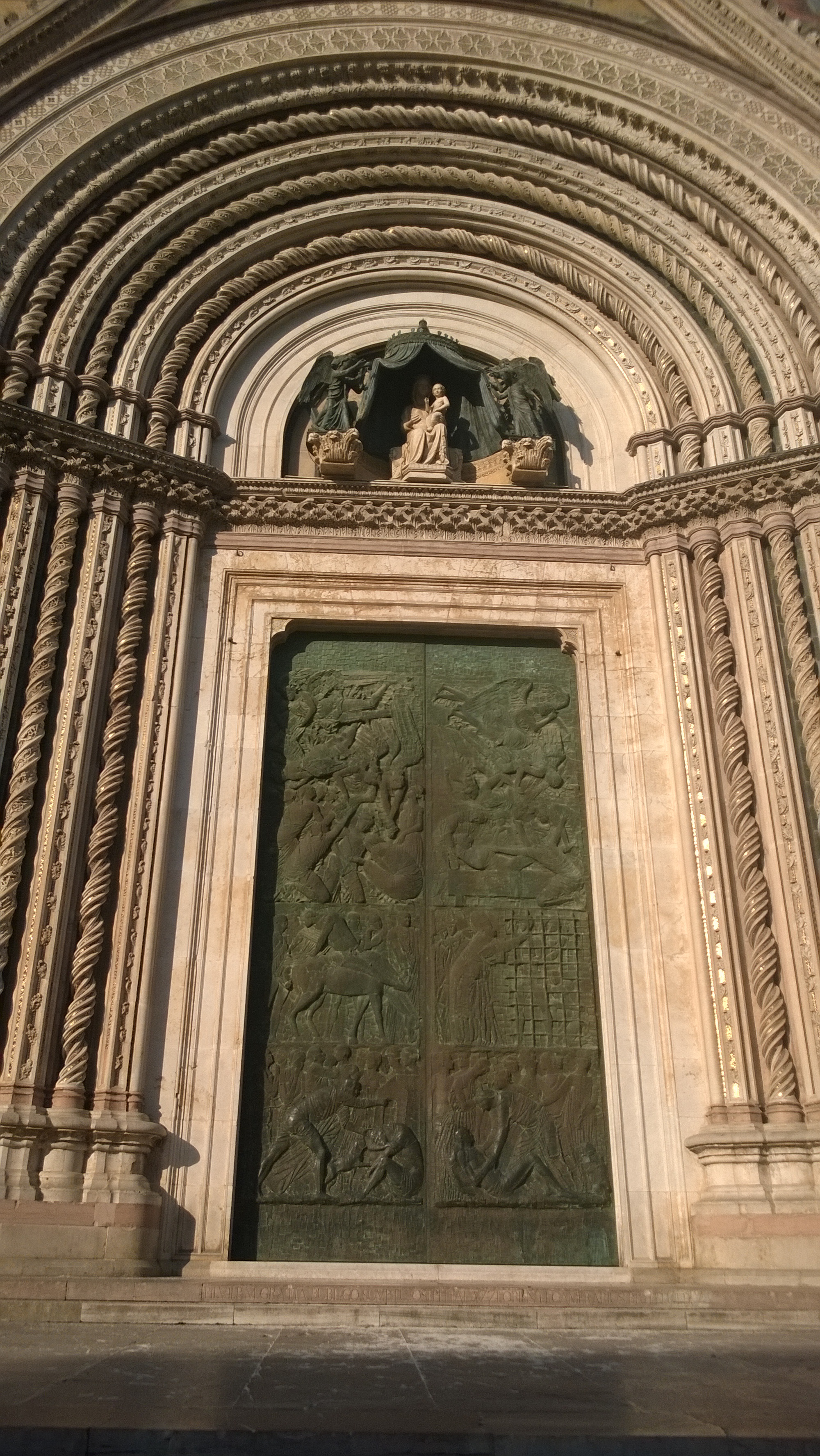 I spend a blissful afternoon taking pictures of the remarkable wooden doors of Orvieto, charmed by their different shapes and sizes. Some are massive rectangles, some feature pointed arches, and some are gently rounded with stone lintels and bronze door knockers.
