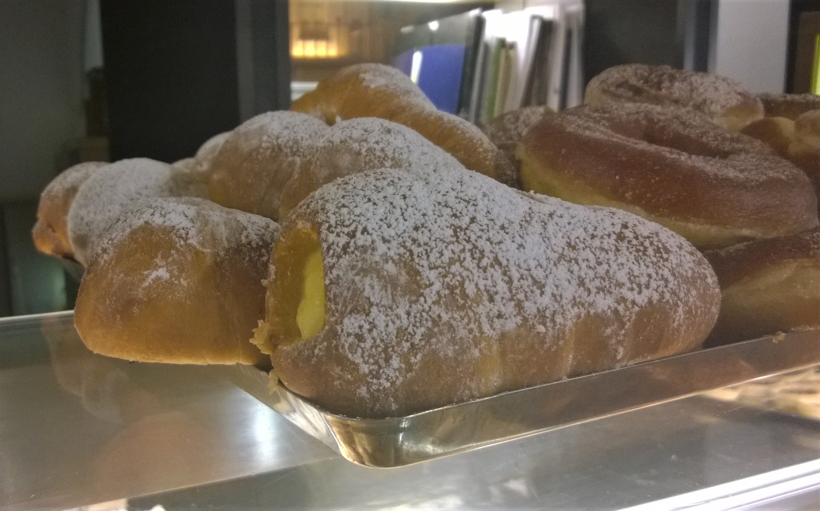 I am tempted by the cannoli dusted with powdered sugar and filled with custard. A sweet memory of those made by my Italian grandmother and which we called “lady locks.” Apparently, every region of Italy has their own unique way to make cannoli—in some areas they are hard shells filled with mascarpone cream, in Rome they are paper thin cones drizzled in chocolate. Here in Orvieto, they are overlapping layers of fluffy pastry that melt in my mouth.