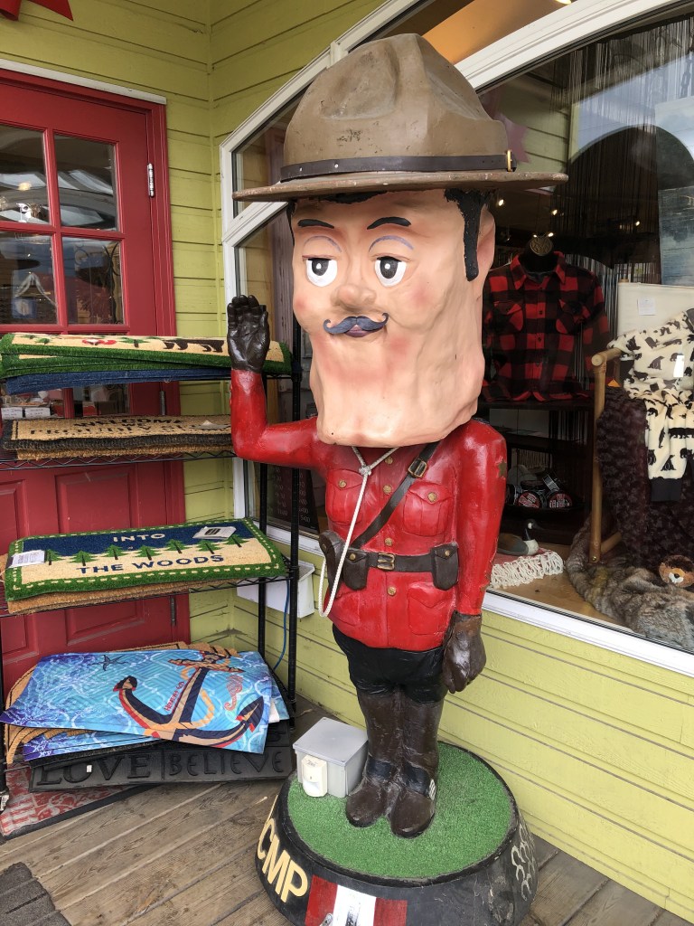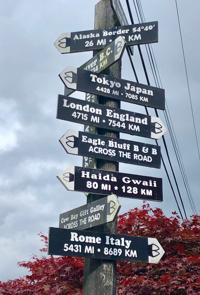 At 7:20 AM, the smell of freshly baked muffins greets us at Cowpuccino’s, the sole coffee shop in town. A makeshift directional sign points to Rome 5431 miles to the east and to Tokyo 4428 miles to the west. Another marker on the pole shows the Alaska border is now 26 miles north. We’re in the land of the “Mounties” — the Royal Canadian Mounted Police.
