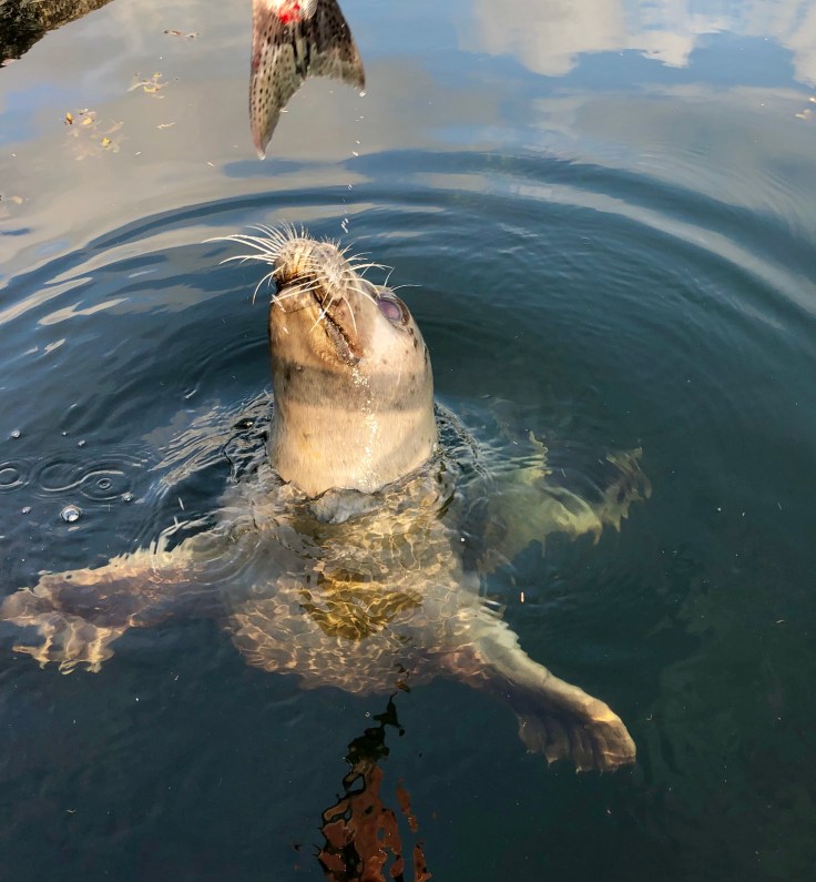 Our overnight anchorage is a picturesque marina where I spend a pleasant hour watching fisherman clean salmon and feed the tailings to a friendly family of harbor seals. With each passing mile today, time moves more slowly, and the modern world is further away.
