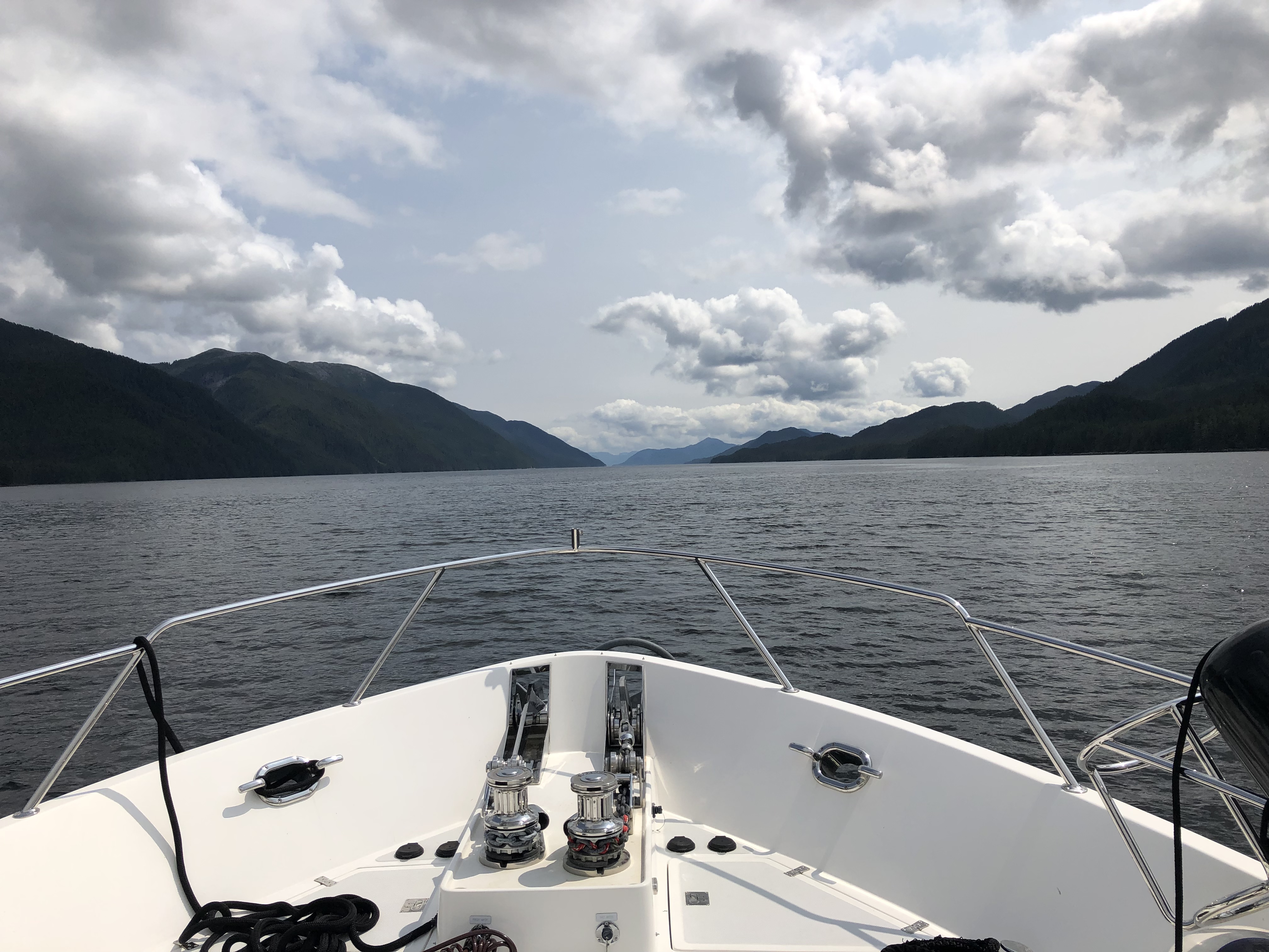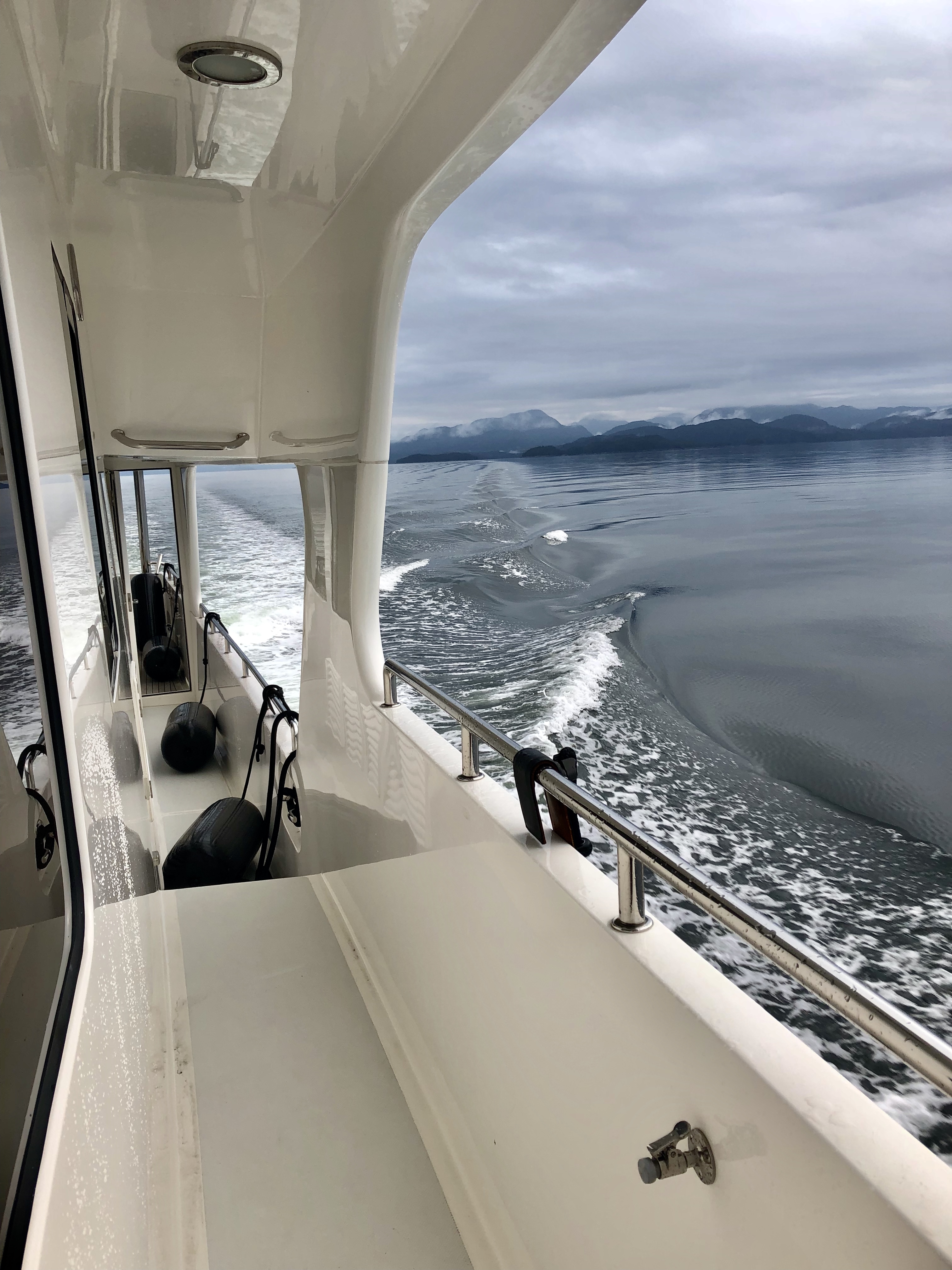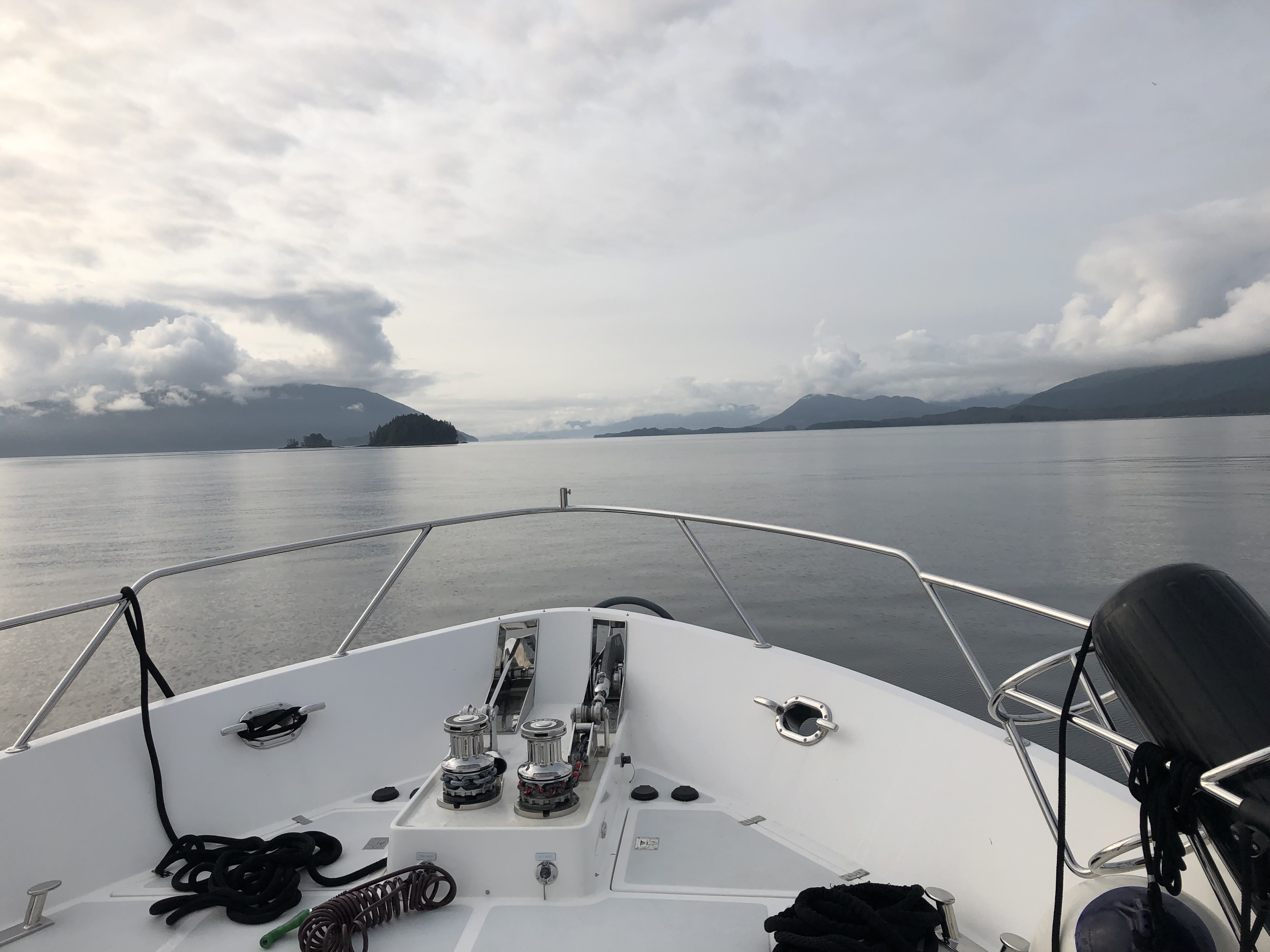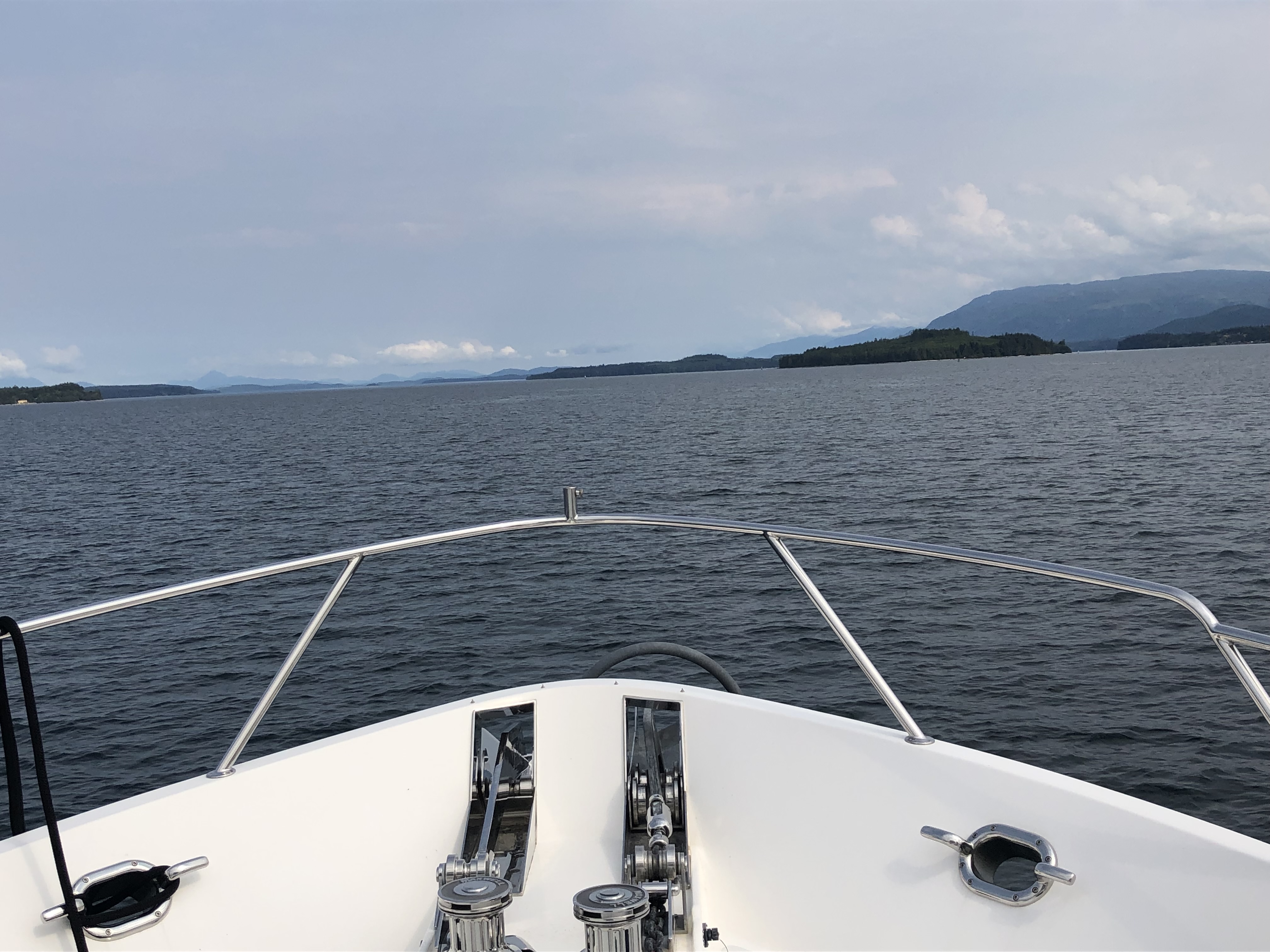 My friend, a master mariner, has been hired to reposition a 70-foot motor yacht for clients who have finished their trip and are flying home. Starting in Ketchikan, Alaska, we will have the boat to ourselves for the 500 nautical mile journey down the Inside Passage to April Point on the east side of Vancouver Island, British Columbia. It will take us five days, traveling at an average speed of ten knots, for eight to ten hours each day.