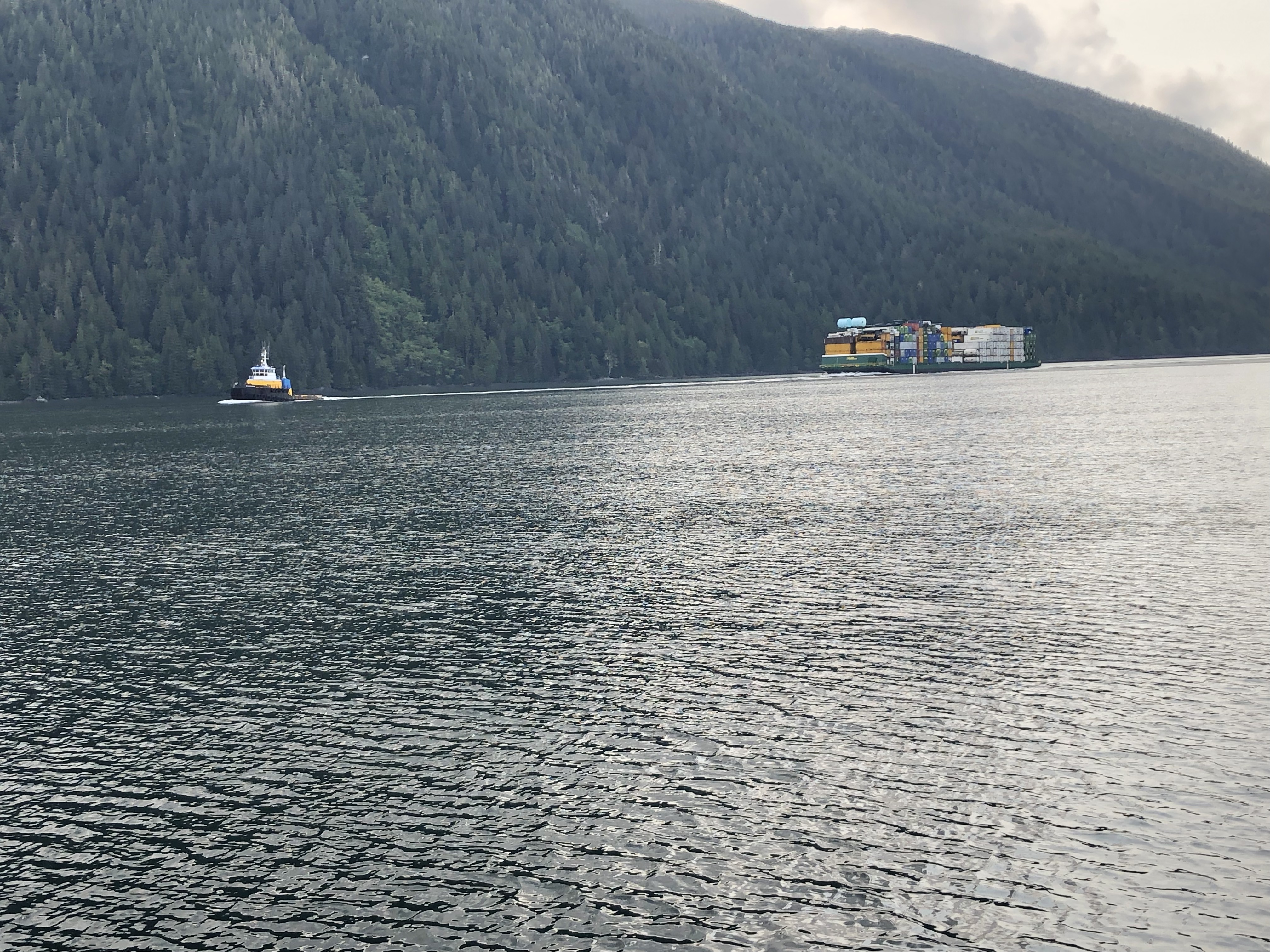 In the narrows, a tug calls us on the radio advising he would like to overtake us on our port. “Roger that,” replies my friend as he slows to six knots to give the tug and barge a wide berth. Many people in the continental U.S. are unaware that the west coast of Alaska and British Columbia is actually a vast archipelago, more than a thousand islands spanning thousands of miles. Tugs towing barges ply these watery highways delivering everything from building materials to appliances to new cars. Ferries and float planes are the other principal modes of transportation to many of the small, isolated communities on these islands.