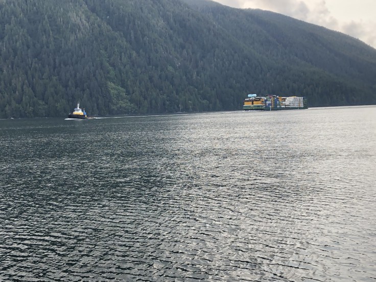 The white hulk of the NorwegianSplendor, a symbol of the modern gold rush, rumbles into view as she approaches the Tongass Narrows bound for Ketchikan. Tourists are already on the bow and flashes from their cellphone cameras flicker like fireflies. Our radio crackles with a woman’s voice alerting us “. . .pleasure vessel Well Sea approaching to pass . . .” and she also signals the tug pulling a large barge a few hundred yards behind us. They intend to pass us both port-to-port in the narrow channel. I smile. Only officers are permitted on the Bridge during Red Manning (nautical protocol when a ship is coming into port) so the woman’s voice is a rarity in the cruise industry—a female Senior Officer on the Bridge.
