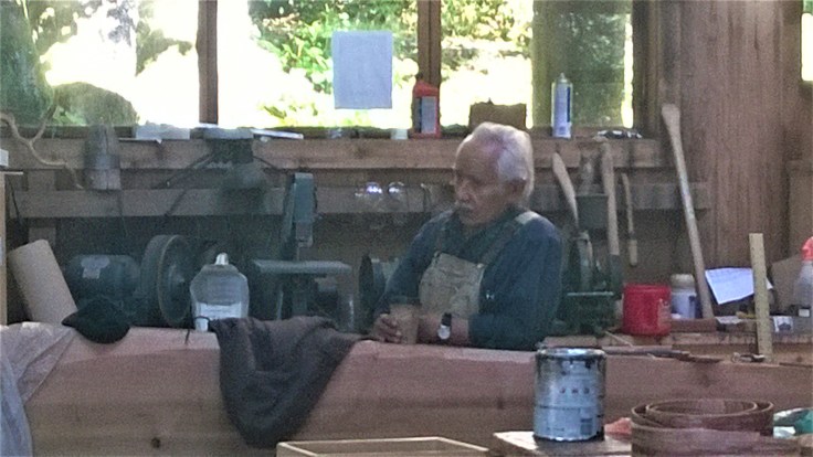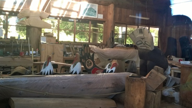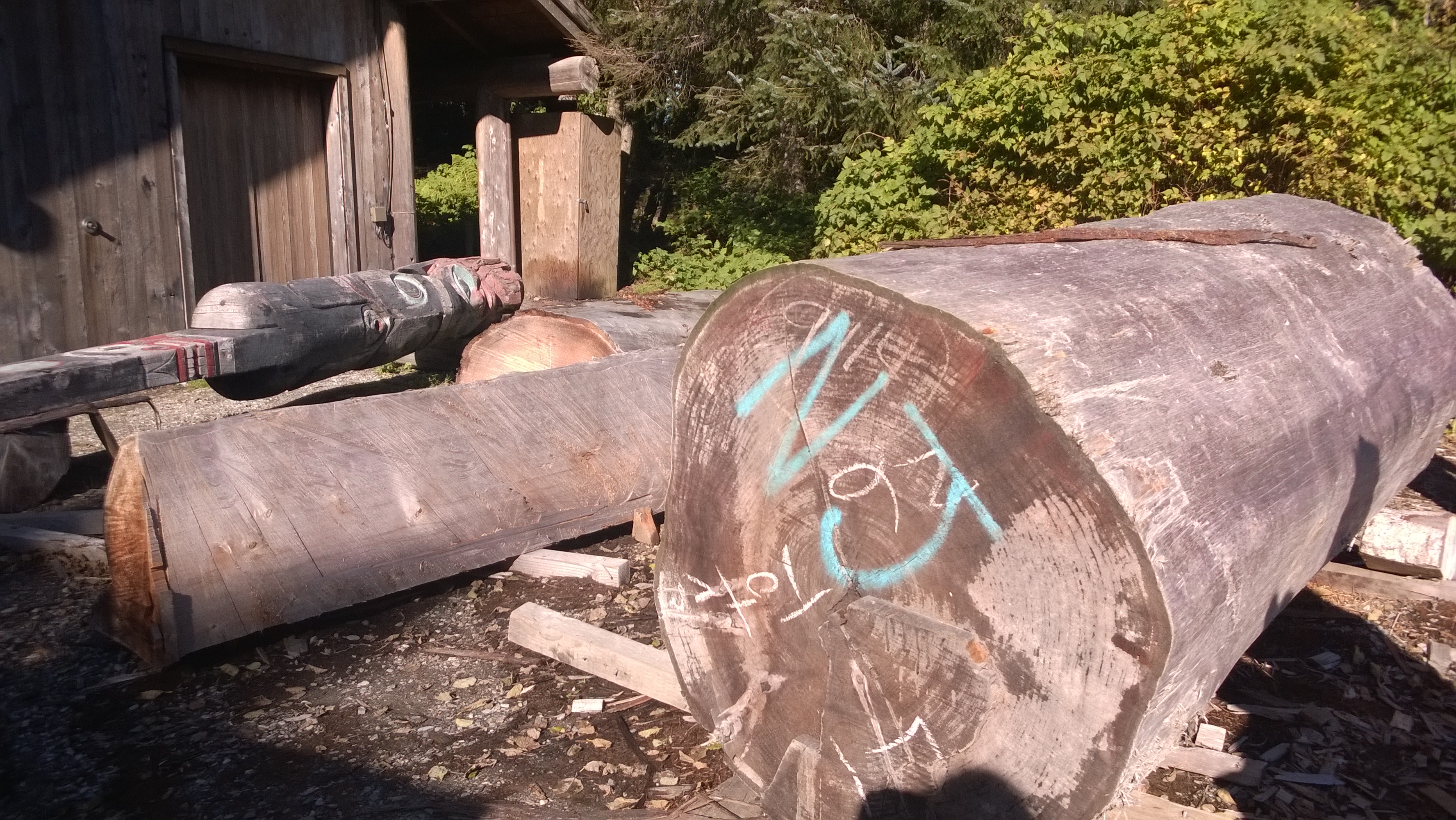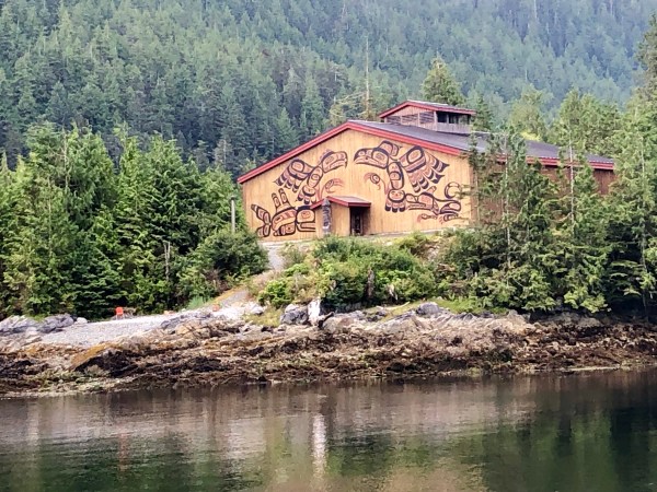A highlight on one of my earlier visits to Ketchikan, I had watched the white-haired and revered carver Nathan Jackson at work on a ceremonial canoe in the Carving Shed, a small woodshop on the site. Just outside the shed, the choicest cedar logs are marked with initials “NJ” waiting for him to transform them into stunning works of art.