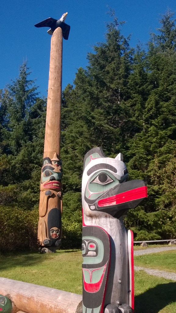 First noticed by European explorers in the 1700s, totem poles were misunderstood. Captain James Cook, who saw totem poles off the coast of British Columbia near Tofino, called them “truly monstrous figures.” Even today, when someone refers to the “low man on the totem pole” they may not realize that the bottom figure was usually the most important one – and it was not a man. It might have been the orca, raven or salmon.