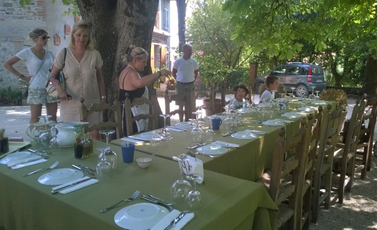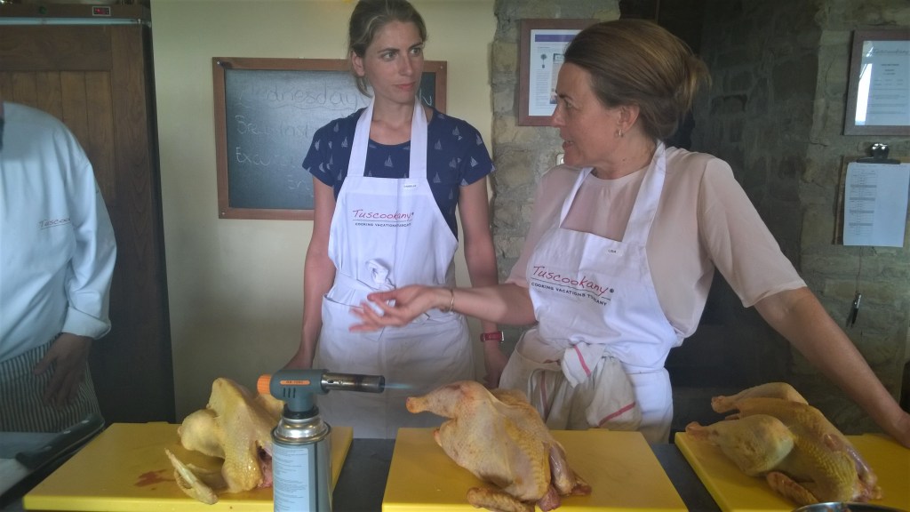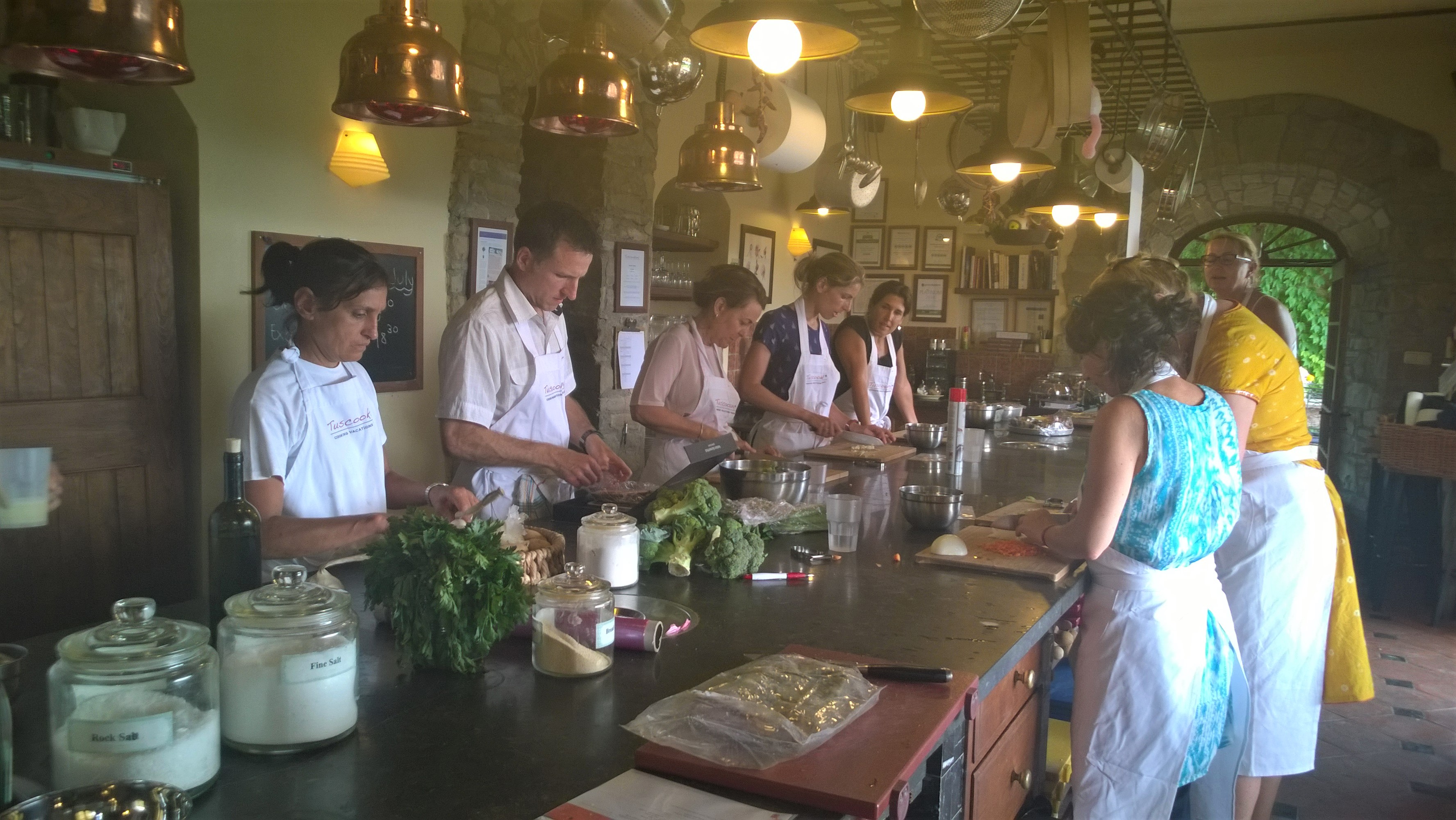 Each morning begins at 7:00 AM with a breakfast of frothy cappuccino, fresh duck eggs cooked to order, spicy capicola or Parma ham, and ripe Tuscan melon. Then we are off in a small van along narrow country roads for our Culinary Excursion of the day. We will return to the villa for lunch and split into teams to cook for five to six hours preparing an evening meal of four courses. My fellow classmates include two sisters from South Africa, Amelia and her 12-year-old son Arlo from Melbourne, Australia, a German couple, a retired teacher from Switzerland, a young American woman about to start medical school, and a couple from New York on their second visit to one of the Tuscookany schools (others are located in equally spectacular villas in Poppi and Bellorica).