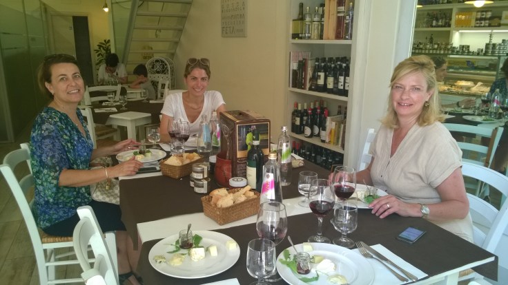 Our destination this morning is a “negozio di formaggi”— a specialty cheese shop featuring a dizzying array of cheeses made with goat milk, cow milk and water buffalo milk. When we arrive, everything is beautifully arranged at a table with plates, wine glasses, and white linen napkins. There are baskets of crusty hunks of bread, individual jars of quince jam, and wines paired with each of the four cheeses we are sampling this morning. These small cheese shop/wine bars are found not just in Arezzo, but throughout Italy, another barometer of how good food is central to “la dolce vita” (the sweet life) in Italy.