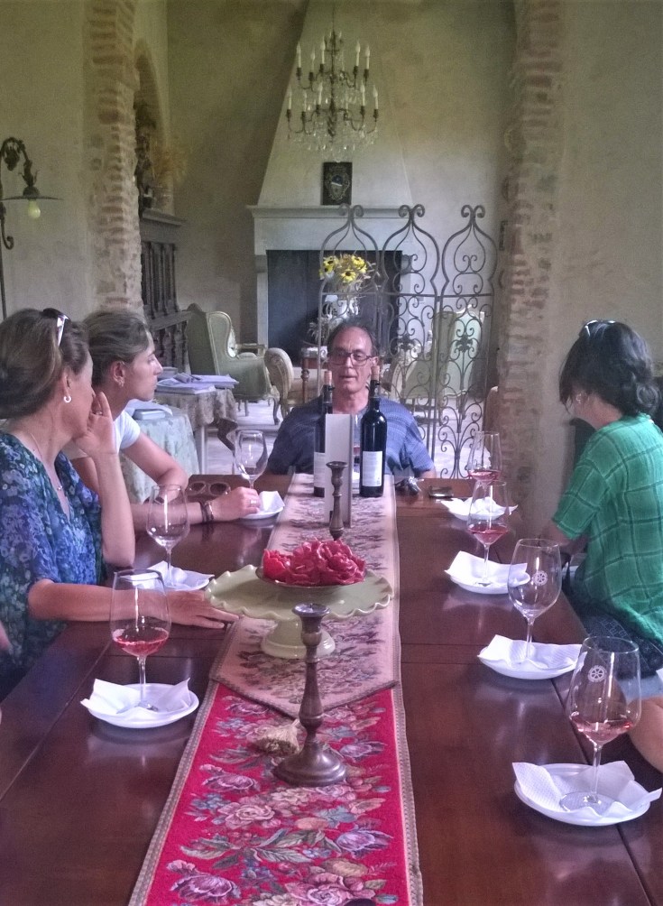 While seated at the long refectory table for wine tasting, Luzzi recounts the history of the villa. The first owner circa 200 A.D. was Marco Peconio, whose name derives for Pacho, the god of wine (more commonly known as Bacchus from the Etruscans). Even in Roman times, this region was linked to the art of cultivating the vine. Circa the year 1000, the property passed to the Ricoveri family who erected a fortified palace with an adjoining tower (the tower is a focal point on the grounds this morning).