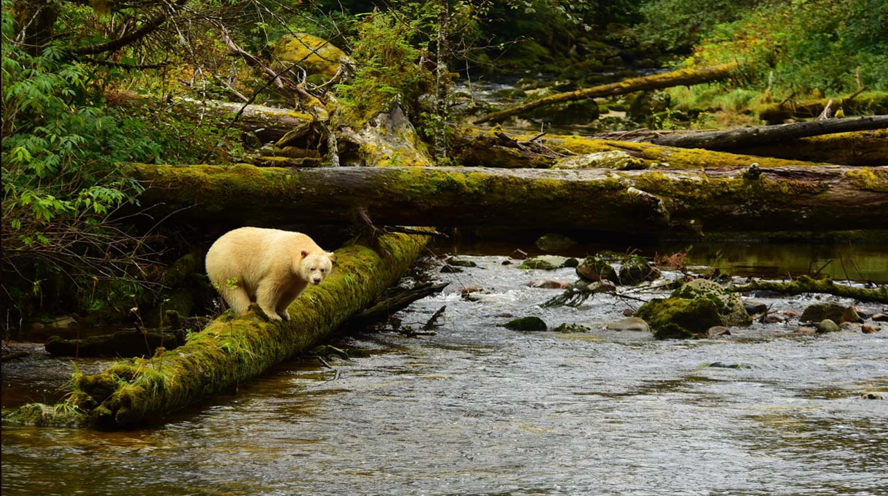 According to tribal legends, Raven made one in every ten black bears white to remind the people of a time when glaciers covered the world so they would become thankful stewards of the bountiful land. For many years, tribal elders rarely spoke of the legendary and elusive Spirit Bear for fear it would be hunted into extinction if word spread of its existence. Yet today the opposite has happened: tourists from across the globe travel to Spirit Bear Lodge in Klemtu for a chance to glimpse the rare and endangered Kermode Bear in its natural habitat (it’s estimated that only 50 to 100 of these white bears exist).