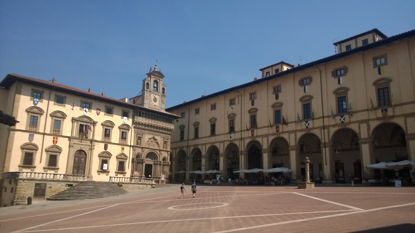 The Piazza Grande is also the site of the Joust of the Saracens held annually every September where the entire town dresses up in medieval costumes to cheer knights on horseback who charge a wooden Saracen king with their lances. I love how every town in Italy has their own unique “La Festa” or festival in their main square or piazza. I pick up several postcards and a booklet on the Joust for my son who is enamored with knights and medieval history.